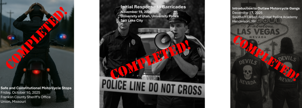 Intelligent Police Solutions provides practical, experience-driven law enforcement training focused on real-world application and decision-making. Upcoming offerings include Initial Response to Barricades in April 2026 (Henderson, NV) and June 2026 (Scottsdale, AZ), along with a case debrief presentation at the FAHN Conference in June 2026 (Orlando, FL).